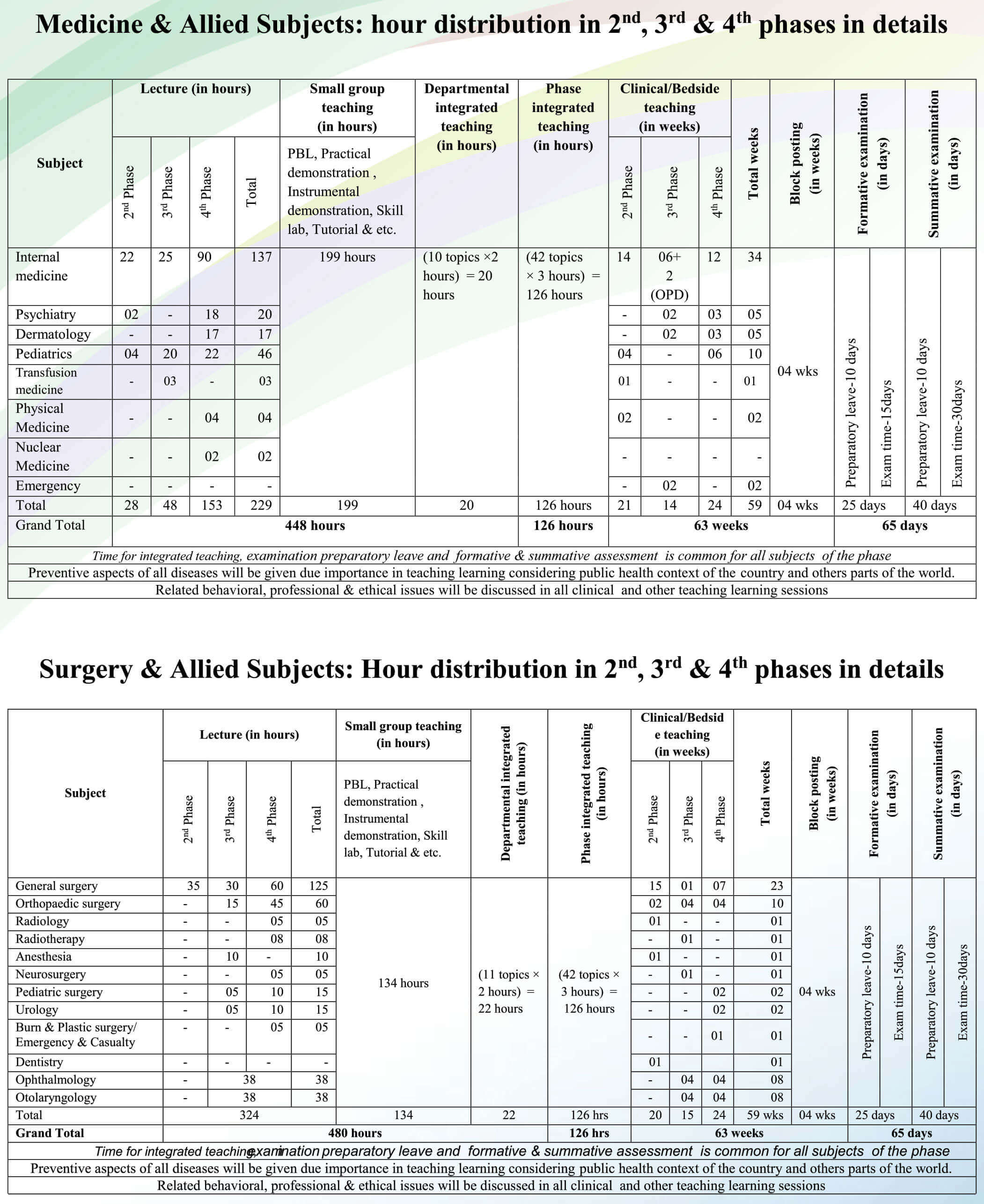 Special note: After taking admission into the first year of MBBS course, a student must complete the whole MBBS course (pass the final professional MBBS examination) within 12 years timeline.