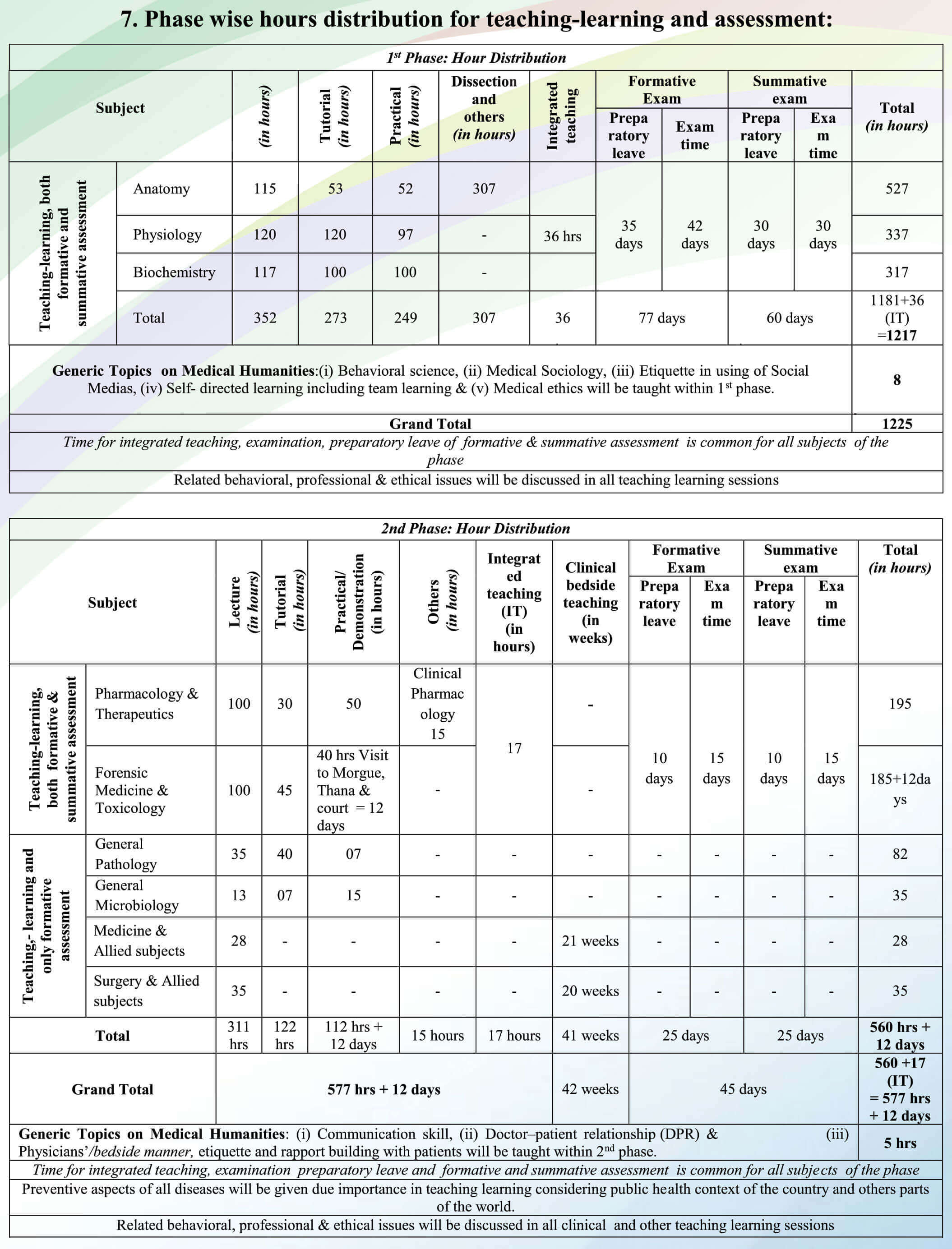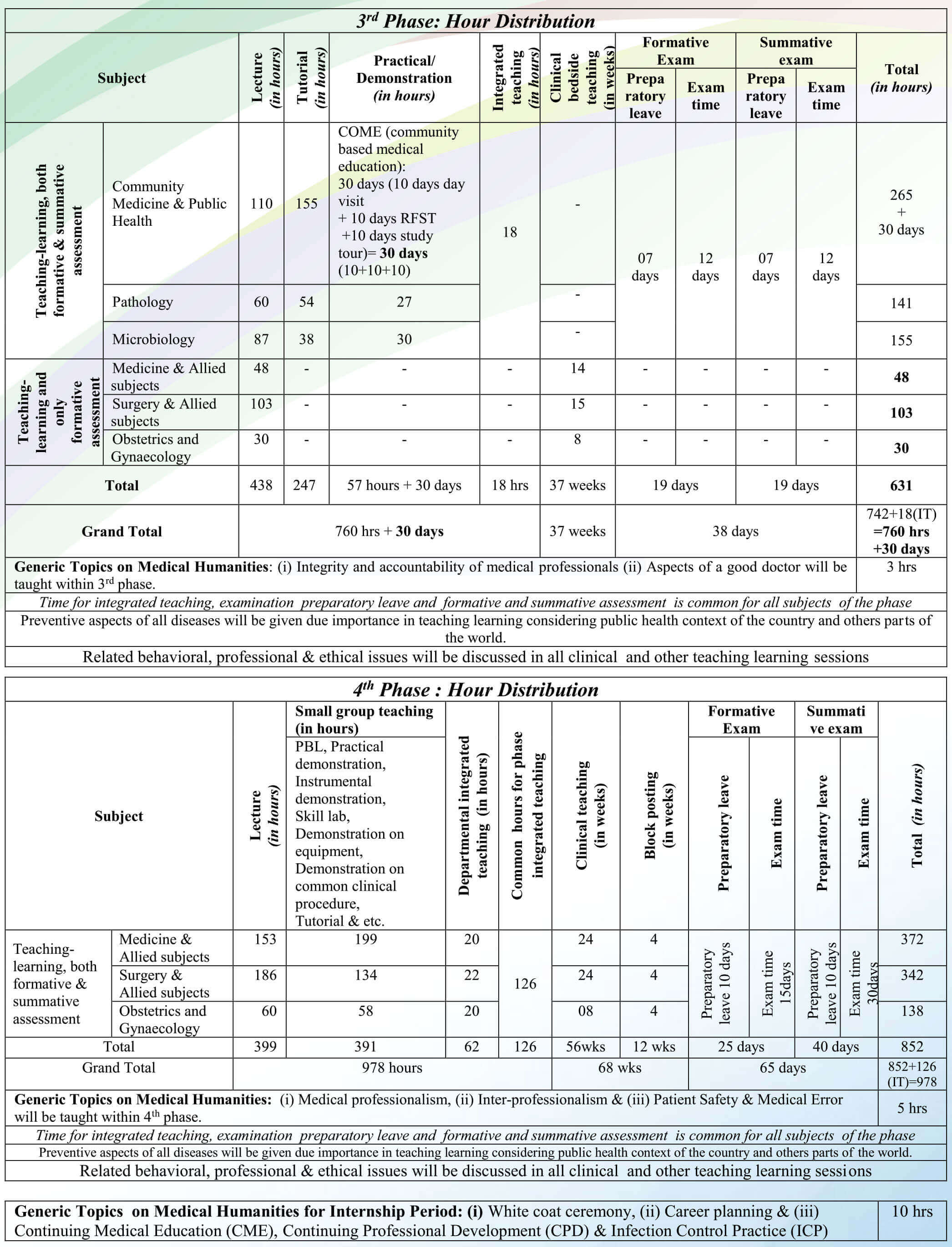Special note: After taking admission into the first year of MBBS course, a student must complete the whole MBBS course (pass the final professional MBBS examination) within 12 years timeline.